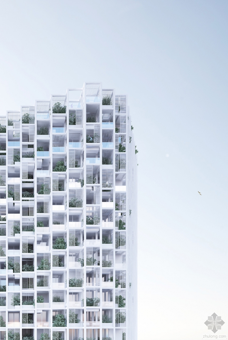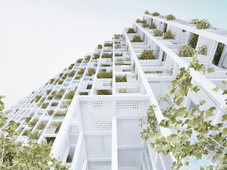 penda首先將一棟建筑中的必要元素——結(jié)構(gòu)、墻體、外立面、天花、地面、基礎(chǔ)設(shè)施、陽臺和景觀等要素從傳統(tǒng)的整體思維中分解出來。然后從一個模塊化的格構(gòu)系統(tǒng)獲得靈感,在新的格構(gòu)系統(tǒng)中只有網(wǎng)格結(jié)構(gòu)和基礎(chǔ)設(shè)施是固定的部分。而其他的要素都可以通過工廠預制進行模塊化加工。這些模塊可以為客戶提供一份目錄,業(yè)主可從產(chǎn)品目錄中選取這些模塊。模塊范圍包括不同的地面單元、外立面單元、欄桿陽臺以及供植物生長的豐富多樣的花盆等??蛻艨梢匀我膺x擇符合他們自己品位的元素進行搭配。penda希望為業(yè)主提供的是一個工具,使他們成為自己公寓的設(shè)計者。