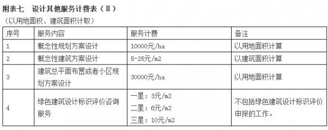 3.2 設(shè)計服務(wù)可采用以投資費率方式計費,也可在部分項目上以投資費率為參照,采用單位建筑面積方式計費或以工日定額方式計費,具體由發(fā)包人與設(shè)計人協(xié)商確定。
