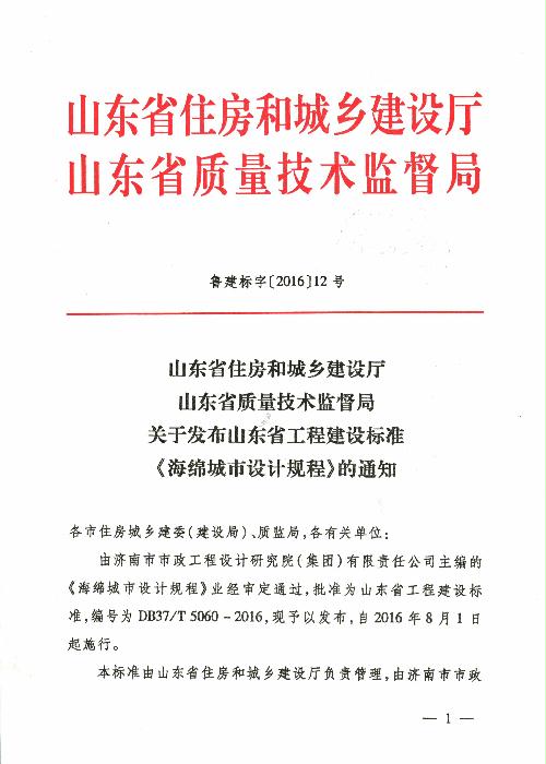 關(guān)于發(fā)布山東省工程建設(shè)標(biāo)準(zhǔn)《海綿城市設(shè)計(jì)規(guī)程》的通知